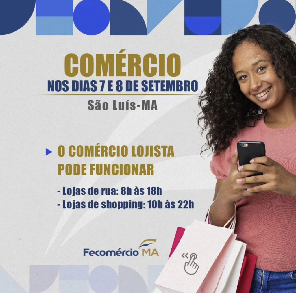 A Federação do Comércio de Bens, Serviços e Turismo do Maranhão (Fecomércio-MA) informa que o comércio lojista de São Luís tem autorização para funcionar nos dias 07 e 08 de setembro de 2023 (quinta e sexta-feira), feriado nacional da Independência do Brasil e feriado municipal do aniversário de São Luís. A decisão firmada entre a […]