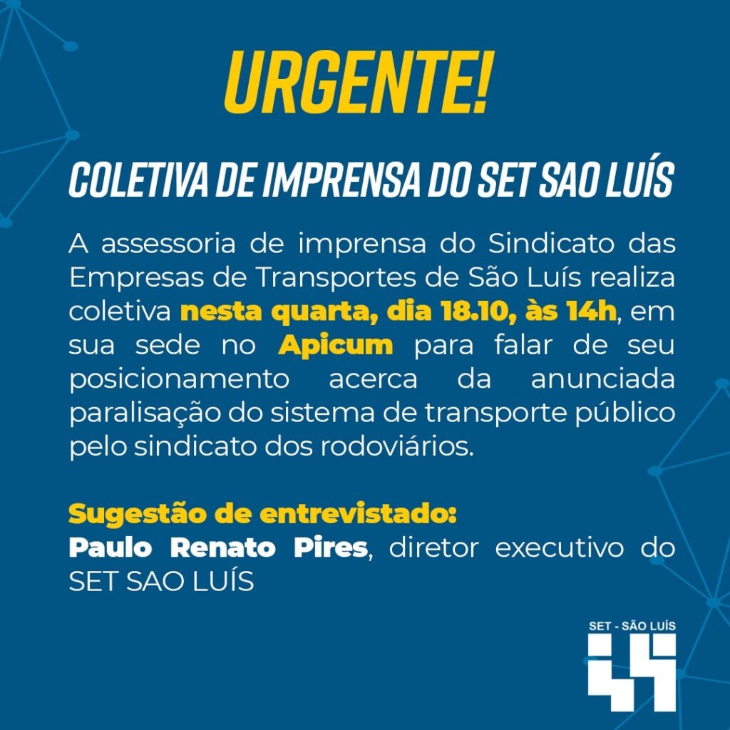 SET anuncia coletiva para a imprensa com intuito de passar detalhes do atual momento do transporte público de São Luís