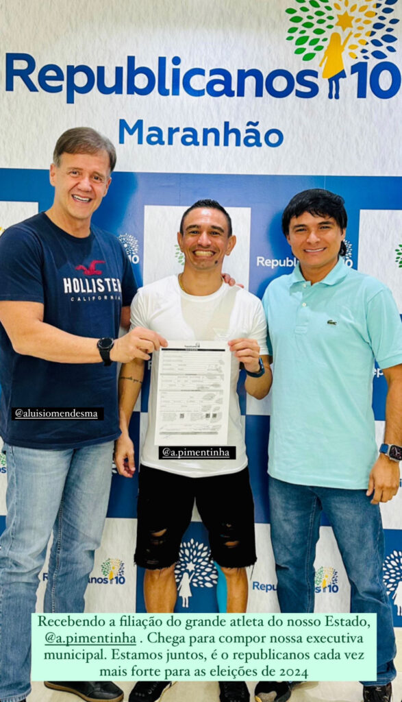 O maior craque do futebol maranhense na atualidade é o novo reforço do partido Republicanos e provavelmente vai concorrer a vaga de vereador em São Luís. Pimentinha, o meia-atacante filiou-se neste sábado, 21 de outubro, ao partido politico. Pimentinha tem 36 anos e segue como craque do Sampaio Corrêa. Ele atuou pela Bolívia Querida entre […]