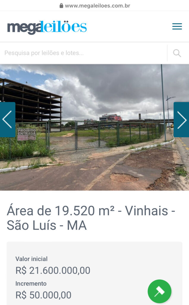 O terreno de propriedade do UDI Hospital, localizado no bairro do Vinhais às margens das Avenidas Jerônimo de Albuquerque e Daniel de Lá Touche está à venda por R$21,6 milhões. Preço este dado como valor inicial em um leilão que está aberto desde o dia 19 de outubro e permanecerá disponível até 14 de dezembro. […]